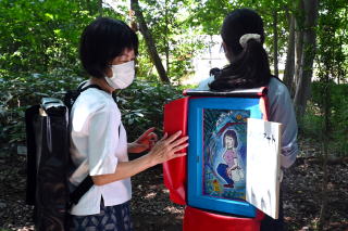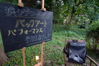 ![]() 赤、黒のバッグに浜シゲ作品を背負って ヴィエントの杜を歩いて見ませんか? ※バックアートパフォーマンスは 当日担当者にご相談ください! |